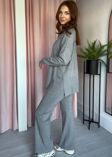 We really can't begin to tell you how versatile this beautiful lounge set is.  The long tunic style drop shoulder jumper with beautiful turtle neck and side splits just skims, definitely no cling!  The boot leg knitted trousers just say laid back luxe. Both pieces can be worn separately, the tunic jumper would look great with jeans or a silky slip skirt, whilst the wide leg trousers would be great with our basic t-shirt and a long soft cardigan.