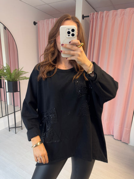 Easy to wear and so versatile. The definition of laid-back glam with the gorgeous sequin bow detail. Pair with comfy leggings or leathers for a dressy look and finish your look with our Studded Sock boots for the perfect understated look.