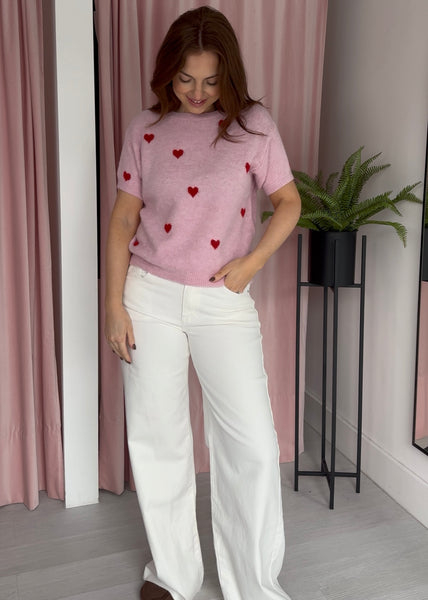 A soft t-shirt jumper finished with a subtle heart detail for a playful touch. Easy to wear, comfortable, and perfect for everyday styling.