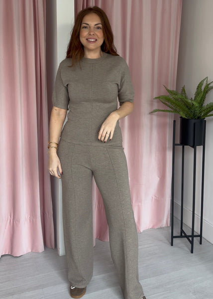 This knitted lounge set features a flattering fitted top with a cinched waist to define your shape, paired with straight-leg trousers and a comfortable elasticated waistband. Soft, cosy and effortlessly put-together, it’s the perfect blend of relaxed comfort and refined style — ideal for home, travel, or casual days out.